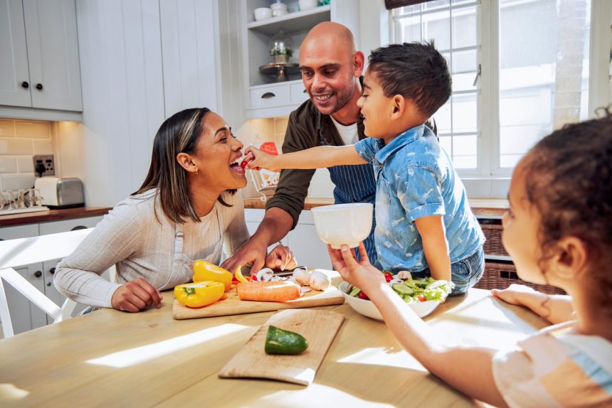Take a bunch of vegetables, put them on the kitchen counter, and ask the kids to make a “plant person.” “Once you’re done,” says Ms. Savage, “it’s a great chance to ask the kids if they want to eat some of their plant person.”